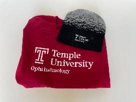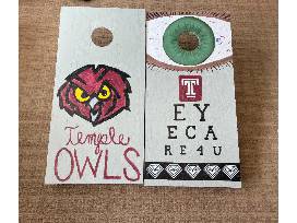 - Cornhole set hand painted by the Temple Ophthalmology staff at a wellness event, as well as an XL Temple Ophthalmology crewneck.