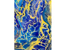 Original art created with custom blended iridescent pigments and topped with a glass-like resin. If you enjoy the colors of deep blue tanzanite with gold accents, you will love this one-of-a-kind piece. Just like Lake Tahoe, the more light you provide this piece, the more it comes alive. Escape into fluidity, dive in!