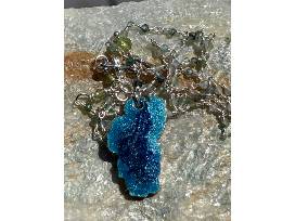 This amazing piece of jewelry makes its own statement! It sports a sterling and peridot chain with hand painted pendant: 18 inches long. Hand crafted by Soroptimist member Lisa Cali!