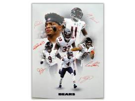Autographed Picture of Chicago Bears Players, Justin Fields, Darnell Mooney, Jaquan Brisker, Cole Kmet, Eddie Jackson and Jaylon Johnson.