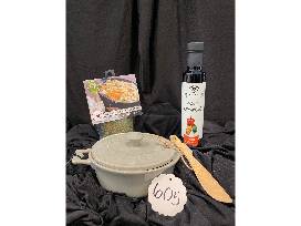 Try this delicious combination of Artichoke/spinach dip mix, Infused Olive Oil and a ceramic Brie Baking Bowl.
