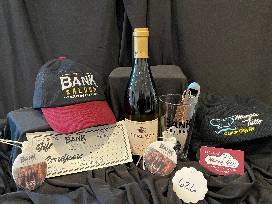 Enjoy a cocktail and great food with a $25 gift card from the Bank Saloon and a $25 gift card from Mangia Tutto. Includes bank saloon beer glasses, key chain, bottle opener, trucker hat, Mangia Tutto beanie and bottle of Chardonnay.