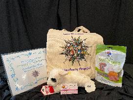 A $250 Lone Mountain Veterinary Hospital gift certificate towards your pet's veterinary services, located in Carson City. The gift bag includes a Lamb Chop squeeze toy and some duck and pumpkin doggie treats for your four-legged friend.