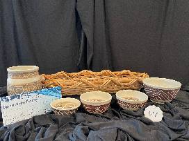 Bid on these unique hand thrown locally produced pottery bowls x4 and vase. Also included is a $75 gift certificate for Ogres-Holm Pottery located on S. Carson Street for pottery classes only.