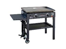 The Blackstone Adventure Ready 28" Griddle Cooking Station will do it all for you and your family. A traditional cart style meets portability with two wheels and a handle with non-slip for positioning and legs that fold and latch for travel. Enjoy 524 square inches of cooking space wherever whimsey takes you and your tank of propane. Two independently controlled cooking zones provide ultimate control with a combined 34,000 BTUs. A single side shelf provides extra prep space just within reach while a lower shelf is great for storage. No matter your griddling style, this Blackstone griddle station is sure to take your meals to the next level.