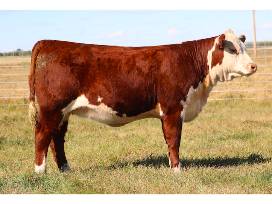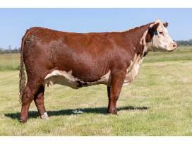 Celebrity is a pretty made, correct and thick heifer off of one of Jill's favorite 2 year olds, Giata 3H. Giata 3H is an amazing mother, since birth she has never been more than a few steps away from her calf, with a tight, level and ideal udder, 18K at her side, it's quite a sight. We are so pleased with this heifer calf, she came easy at 77 lbs and has ideal calving ease and maternal numbers. She would be another ideal show female for 2023. The Hereford breed will have excellent prize elevation at Summer Synergy. Co-owned with Six South Acres Ltd.