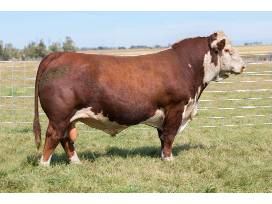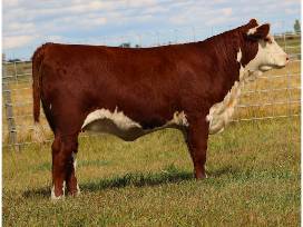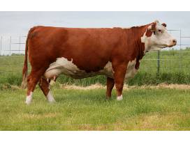 This Harvie Captain ET 170F daughter is long patterned, deep bodied with added performance. Her goggle eyes, long neck and extra length of body is impressive. Her dam is a striking female, patterned very similarly. The Captain daughters have continued to impress. Captain won 3rd overall Champion Hereford Breeder Bull of the World a couple years ago. Now his progeny continue to bolster his popularity. Come have another look at Cindy 145K.