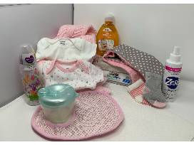 Get ready for the baby girl in your life. This lovely diaper bag, burp cloth, 2 pairs of socks, 1 bottle, 1 white onesie, 1 zipper outfit, 1 pink blanket, 1 pack of wipes, 1 bottle of hand sanitizer, 2pack of pacifiers, 1 toy,1 bib, 1 hat, 1 baby wash, and 1 formula/snack container may be perfect for you.