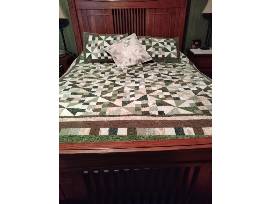Quilted with love! This Longaberger basket includes a BEAUTUIFUL 80x80 handmade quilt of various green and beige colors, 2 pillow shams, and 1 pillow.