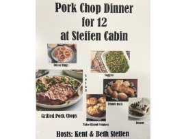 Enjoy a pork chop dinner, sides & dessert prepared for you by Kent & Beth Steffen at the Steffen Cabin.