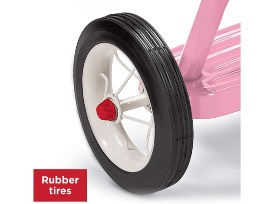 - CLASSIC TRICYCLE: This classic tricycle has a 12" front wheel, an all-steel frame, spoked wheels, and rubber tires for durability. The handgrips provide comfort while the streamers add fun.