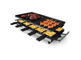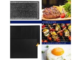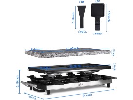 The Korean BBQ Grill Set Includes One Stainless Steel Raclette, One Full Size Reversible Cast Aluminum Grill Plate (19" X 9.5"), One Full Size High Density Granite Grill Stone (19" X 9.5"), Ten Raclette Dish Holders With Heat Resistant Handles and Ten Spatulas, Making It Great For Parties And Family Fun With Delicious Food. Granite Grill Stone Need To Warm Up for 10-15 Minutes.