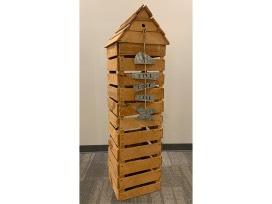 Tall Wooden Birdhouse & Metal Fish Sign
