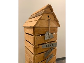 Tall Wooden Birdhouse & Sign