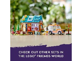 This LEGO Friends camping playset for kids Ages 7+ features a toy car with an attachable small toy house on wheels which opens to reveal interior. Includes a kitchen with a fridge, oven and drawers, a bathroom, beds for each mini-doll, a birdhouse, a mailbox, solar panels, plants and more! Features Leo, Liann and Paisley and their pets, ready to explore the forest or play the guitar. This camping playset features a toy car (with seats for 3 mini-dolls and space for the luggage) that can be attached and tow the mobile toy house.
