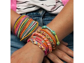 - Includes 1 bracelet maker with storage drawer, 12 skeins of cotton thread and instruction book with 9 looping styles (and endless variations!)