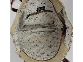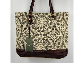 This bag is embellished with subtle geometric designs and elegant brown leather at the bottom. Grab one for spacious insides, great design, leather straps and absolute value for money.