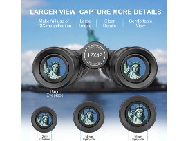 - With only 560g weight, Adasion 12x42mm binoculars deliver 367ft/1000yds large field of view.