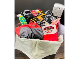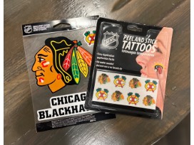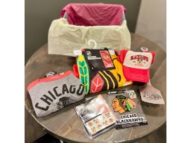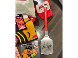 Included: Blackhawks Hat, Blackhawks Grill Spatula, Blackhawks Beach Towel, Blackhawks Vinyl Logo Decal, Blackhawks Sticker Tattoos, & Men's 2XL Blackhawks
