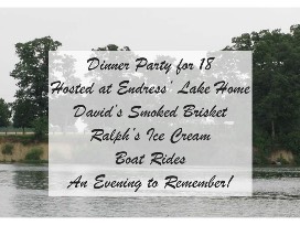 Featuring boat rides and David Kieser's famous smoked brisket. You will also get to enjoy Ralph's equally famous homemade ice cream! Get a group of your friends to pitch in on this experience...it's an evening you are sure to remember!