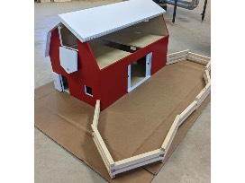 Removable top floor, sliding doors on front, walk-in sliding front door, and hay loft opens; plus 8 ft. of foldable fencing. Absolutely wonderful craftsmanship. Your children or grandkids are sure to love this classic and timeless play set.