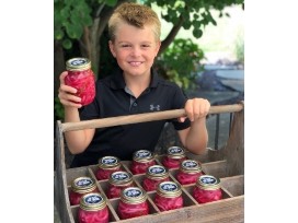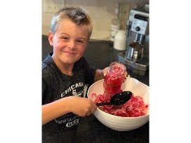 Pierce O'Shea is 10 years old. He developed the 'secret' recipe with the help of his dad and can now do most of the process on his own. He continues making pickled onions to order and selling them door to door to neighbors.