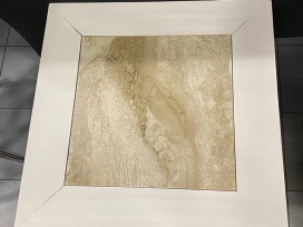 Tan swirl 12" Tile inset around Wood Border