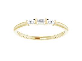 Your beautiful self will sparkle and shine with this gorgeous ring from the LoveJames Jewelry Fine Collection. This baguette-cut diamond ring is perfect to wear alone or stacked with other rings. It is made with 14k solid yellow gold and 1/6 carat natural diamonds. Timeless and elegant, your hands will radiate class.