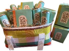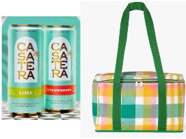 This pink and green sassy Kate Spade cooler bag comes with 6 four-packs of Casatera Tequila Seltzer. You'll be the most stylish-and the most popular guest-at any party! Don't leave home without it! Includes 4 lime and 2 grapefruit flavored four-packs.