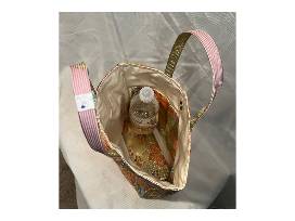 Upcycled Obi handbag attached bottle holder inside, 9.5x11.5x4 inches