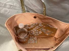 Upcycled Obi handbag, attached bottle holder inside, 10x15x4 inches