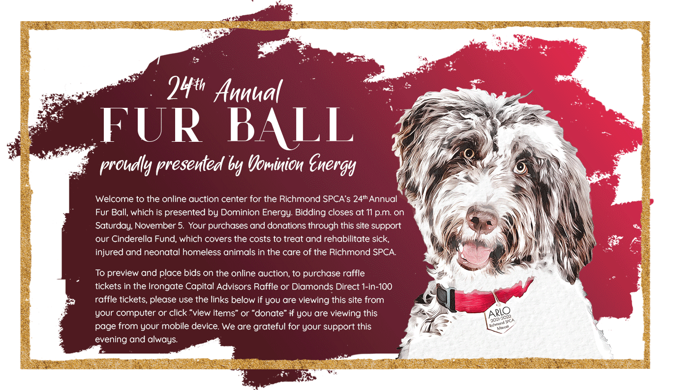 You do not need to attend the Fur Ball at The Jefferson Hotel on Saturday, November 5 to bid in the online/silent auction. Live auction item previews are available on the auction site, however, please note that bidding for these packages will occur in person at The Jefferson Hotel on the evening of November 5 and not online. If you do not have a ticket to attend the Fur Ball in person but are interested in a proxy bid, please email Tamsen Kingry before 12 p.m. on Friday, November 4.