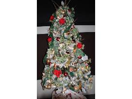 This beautiful 7 to 8ft. prelit tree includes wooden ornaments that were handmade and purchased in Germany, beautiful red roses and gold accents. This tree also includes a $300 gift card to New Frontier Travel.