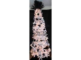 Decorated with white and black ornaments that give this tree a modern, classy look.