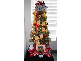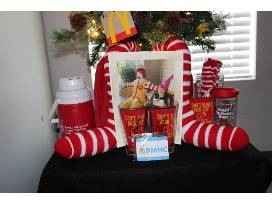 4 ft. prelit tree decorated with 20-$5 McDonald's gift cards and some items from Ronald McDonald home.