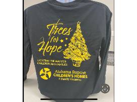 5(XXL) Black and Gold long sleeve t-shirt featuring the Trees for Hope and Alabama Baptist Children's Home logos. Items will be available for pick up at the Trees for Hope event on Nov. 8, 2022.
