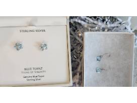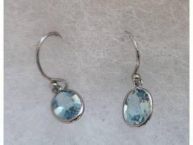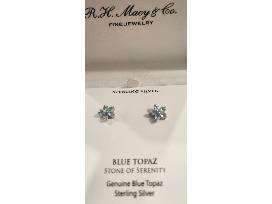 #244- Blue Topaz Stone of serenity flower earrings Genuine Blue Topaz sterling silver. By R. H. MACY & Co. Fine jewelry. Oval set of Blue Topaz earrings.