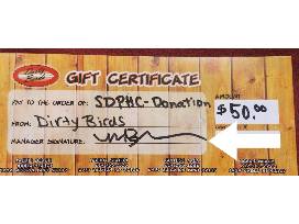 Donated By World famous, Bare Back Grill & Dirty Birds