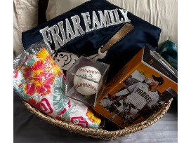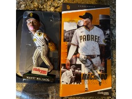 #420 - Embroidered Friars Family snap button jacket - size Medium A SD Padres Aloha shirt - size XL A MANNY MACHADO Bobblehead
