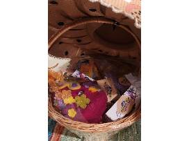 Hand painted hat from Yvonne Castelli. $25 gift card, Felted Bird house. Dragon fly wind chime, scented candle. Amethyst bracelet, "Ganz-fashion Bandeau", blue sage incense sticks, coffee blossom honey straws botanicals room mist, lotus love soap.