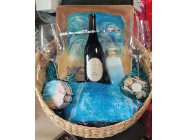 Forgotten Barrel Red Wine with 2 wine glasses Holder for Wine bottle and glasses Shell candle Sea coasters and serving tray Bath Salt Rectangle Tablecloth 52x70inch, Sea Turtle, Vinyl Table Cover