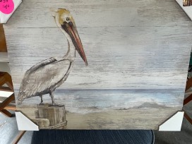 #375 2 pieces: 14 by 14 wood shell art and 18 by 24 wood Pelican Wall art item 375, 1. & 2