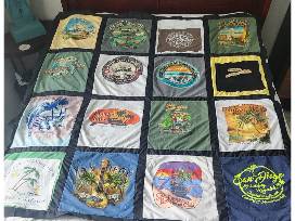 Handmade quilt crafted with San Diego Parrot Head Club shirts donated from Teri and Mike Pendergrass. Queen size, washable.