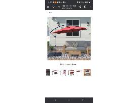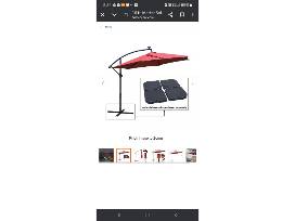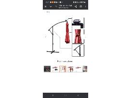 Hampton Bay Chili Red Canopy offset umbrella with LED lights. Powder-coated steel pole, solar LED light bars, uv protected fabric, crank lift and full 360 degree rotation. 2 yr frame and fabric warranty, rust resistant stand.