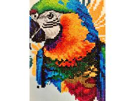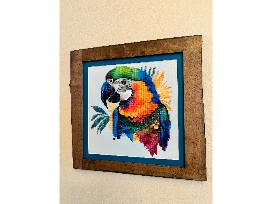 Beautiful handmade parrot head diamond art in a natural solid wood frame.