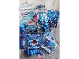 #114 Eaten Alive Pool Float by Swimways- Starving Shark. 2 shark drinking cups with straws. SHARK grabber, shark sunglasses, Shark fin light up headband, Shark visual encyclopedia. Shark arm bands and headband. Stickers, toy shark, fidget animal, shark towel.