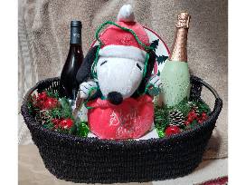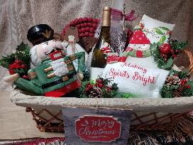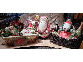 Two Gift Baskets, 3 Bottles of Wine, & a Santa Cookie Jar - See complete list below: