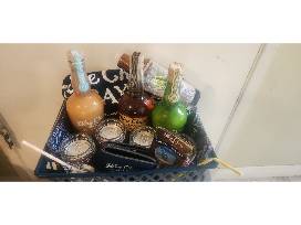 #147- Engraved bottle of Blue Chair Bay Spiced Rum. Bottle of Blue Chair Bay Moca Cream, bottle of key Lime Rum cream. Two Blue chair bay tshirts, 1 XL and 1 Lg. Two bandanas, two key lime lip balm. 4 koozies. 4 glasses, small can coke, 2 diet cokes, 1 ginger ale. Glass Shaker.