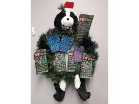 Our Lucky Dog is always a winner! Check out this Lucky Dog wreath loaded with lottery tickets so you can test your luck!