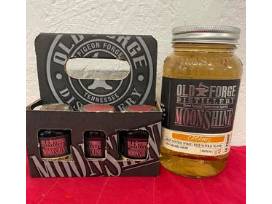 Bundle includes a jar of carmel moonshine and a six pack sampler of moonshine!